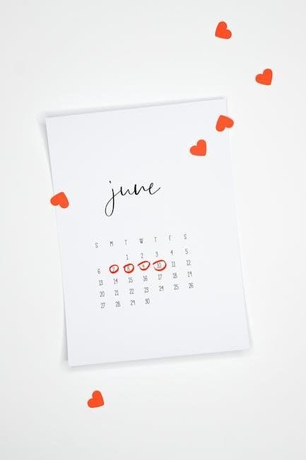 June brings a delightful mix of nationally recognized holidays and observances perfect for marking on your June 2024 PDF calendar․ Flag Day, celebrated on June 14th, is a patriotic occasion honoring the American flag․ Father’s Day, falling on June 16th, provides a dedicated day to appreciate fathers and father figures․